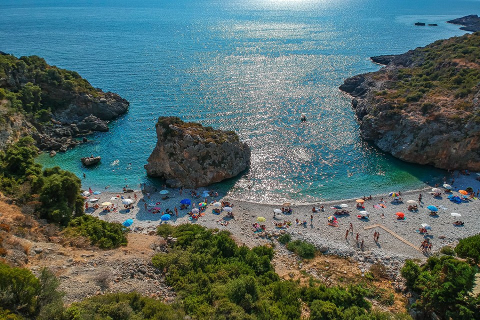 Aerial,View,Of,The,Famous,Rocky,Beach,Foneas,Near,Kardamyli