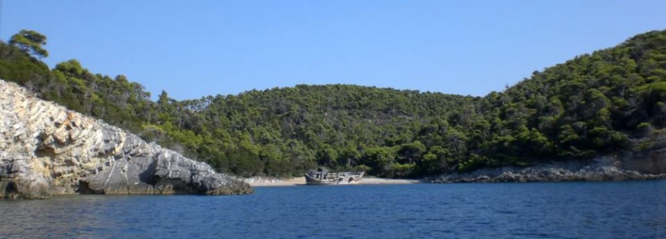 Agalipa beach, with reckship, Skiros island, Sporades islands