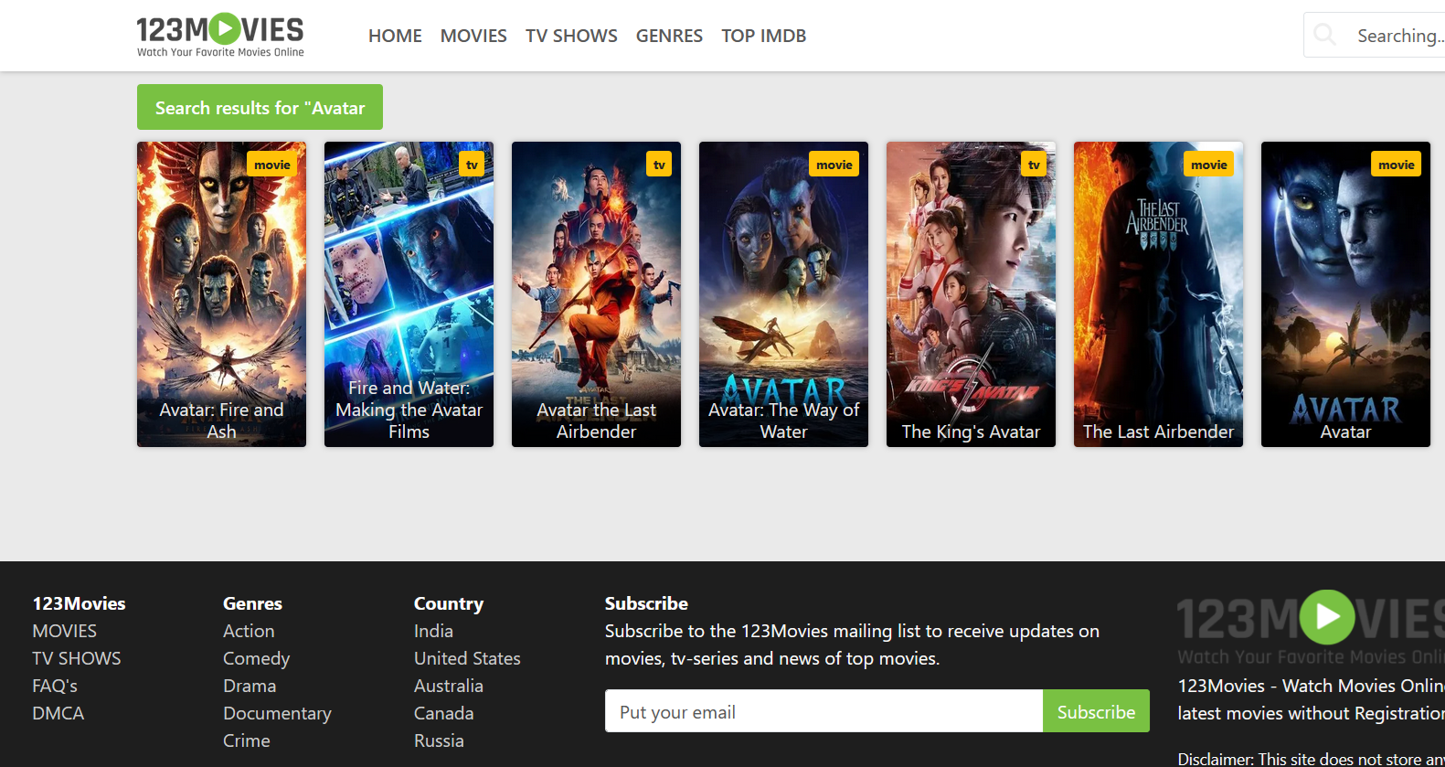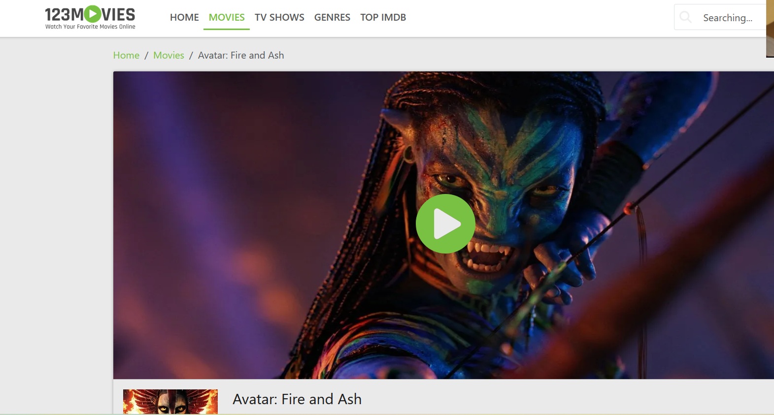 Από εδώ και πέρα τα πράγματα είναι απλά. Επιλέγετε μια ταινία ή σειρά πληκτρολογώντας εκεί που γράφει “Searching” το όνομά της πχ “Avatar”, είτε πηγαίνετε και επιλέγετε από το Μενού πάνω-πάνω κάποια κατηγορία που σας ενδιαφέρει πχ HOME, MOVIES, TV SHOWS και διαλέγετε αντίστοιχα ταινία/σειρά κλπ. Ας πάρουμε για παράδειγμα την επιλογή: “Avatar”. Κάνοντας κλικ στο “Searching” εμφανίζεται η επόμενη εικόνα: