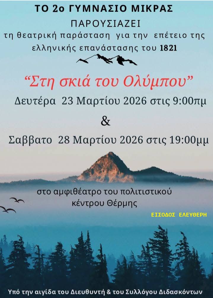 ΘΕΑΤΡΙΚΕΣ ΠΑΡΑΣΤΑΣΕΙΣ ΜΕ ΕΛΕΥΘΕΡΗ ΕΙΣΟΔΟ ΣΤΗΝ ΥΠΟΛΟΙΠΗ ΕΛΛΑΔΑ (ΕΚΤΟΣ ΑΤΤΙΚΗΣ)