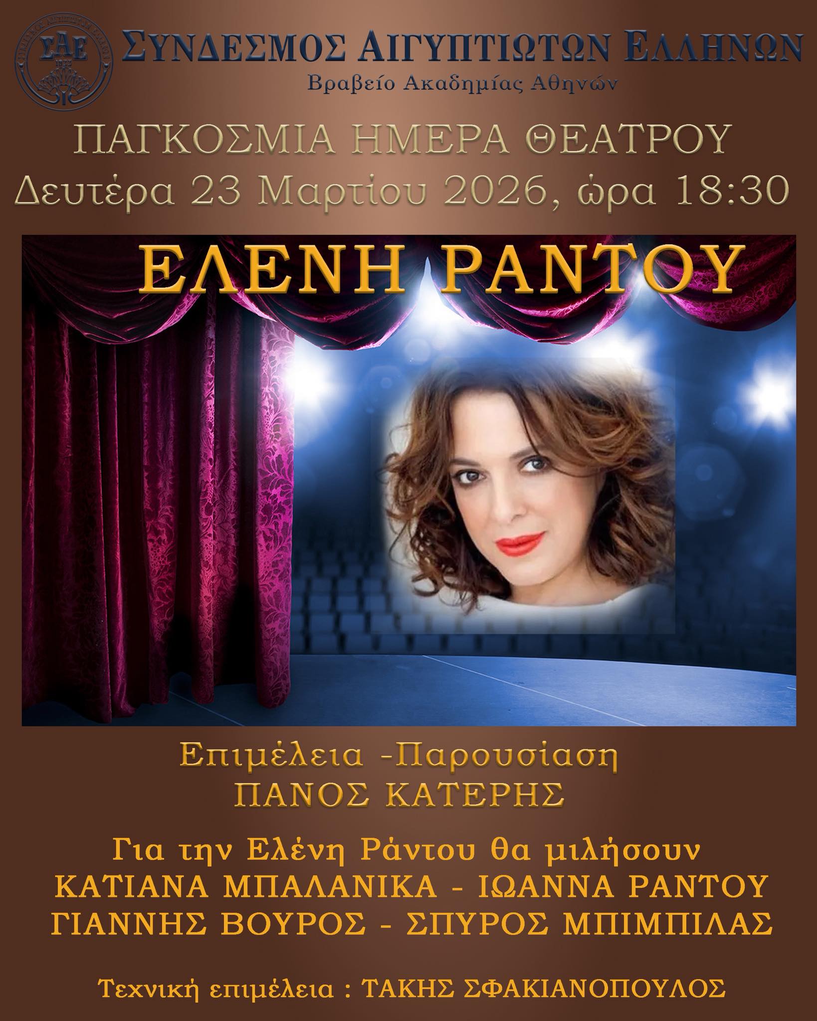 Με αφορμή την Παγκόσμια Ημέρα Θεάτρου, το Θέατρο Σταθμός διοργανώνει μια ιδιαίτερη εκδήλωση αφιερωμένη στη μνήμη του σημαντικού Έλληνα ηθοποιού Δημήτρη Ήμελλου, τιμώντας τη ζωή, την πορεία και την καλλιτεχνική του προσφορά στο ελληνικό θέατρο. Η εκδήλωση θα πραγματοποιηθεί την Πέμπτη 26 Μαρτίου, στις 20:00 με ελεύθερη είσοδο για το κοινό. Για τον Δημήτρη Ήμελλο θα μιλήσουν φίλοι και στενοί συνεργάτες του: O σκηνοθέτης Στάθης Λιβαθινός, με τον οποίο συνδέθηκε καλλιτεχνικά σε σημαντικές θεατρικές στιγμές, καθώς και οι Γιώργος Κουτλής, Μαρία Σαββίδου, Δημήτρης Μαμιός και Άρης Τρουπάκης. Μέσα από προσωπικές μνήμες, συνεργασίες και μαρτυρίες θα αναδειχθεί όχι μόνο η καλλιτεχνική του πορεία αλλά και η ανθρώπινη πλευρά ενός ηθοποιού που αγαπήθηκε βαθιά από συναδέλφους και κοινό. Την επιμέλεια της βραδιάς έχει ο Θοδωρής Αμπαζής, διαμορφώνοντας μια συνάντηση μνήμης και συγκίνησης, όπου το θέατρο θυμάται έναν από τους δικούς του ανθρώπους, ο οποίος ήταν ο πρώτος βραβευθείς με το “Βραβείο Δημήτρης Χορν” και που έφυγε από τη ζωή σε ηλικία 57 ετών, στις 16 Δεκεμβρίου 2025. Πηγή: athinorama.gr