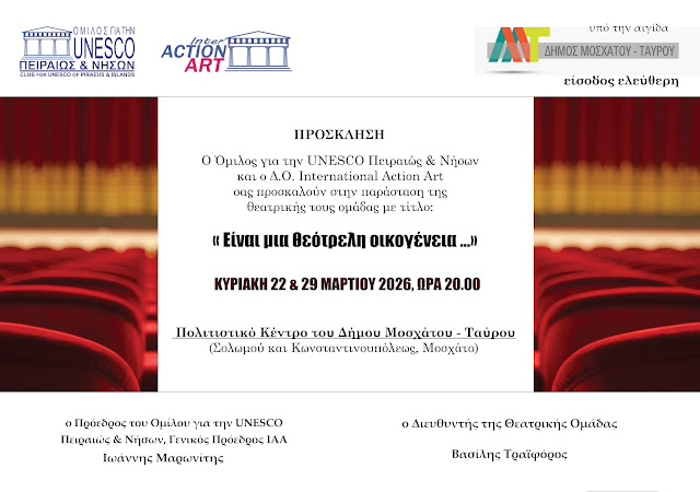 Σε αυτή την σελίδα θα σας παρουσιάσουμε όλες τις δωρεάν θεατρικές παραστάσεις αλλά και όσες έχουν οικονομική είσοδο (από 2 έως 6 €) ή είναι με ελεύθερη συνεισφορά ξεκινώντας με αυτές που παρουσιάζονται εντός Αττικής (με αλφαβητική σειρά ανά Δήμο) και συνεχίζοντας με εκείνες που παίζονται σε πόλεις εκτός Αττικής ή σε νησιά (με αλφαβητική σειρά ανά Νομό). Παρακαλούμε να λάβετε υπόψην σας την Πηγή που αναφέρεται κάτω από κάθε εικόνα ή στο τέλος μιας παραγράφου και να κλικάρετε επάνω στην μπλε περιγραφή δίπλα από την Πηγή, γιατί ορισμένες φορές κάποιες παραστάσεις ακυρώνονται την τελευταία στιγμή λόγω έκτακτων συνθηκών (συνήθως ασθένειας των ηθοποιών ή ακραίων καιρικών φαινομένων) και αυτή η πληροφορία εμφανίζεται στην επίσημη σελίδα της εκάστοτε παράστασης. Επίσης φροντίστε για την έγκαιρη προσέλευσή σας γιατί τηρείται σειρά προτεραιότητας.