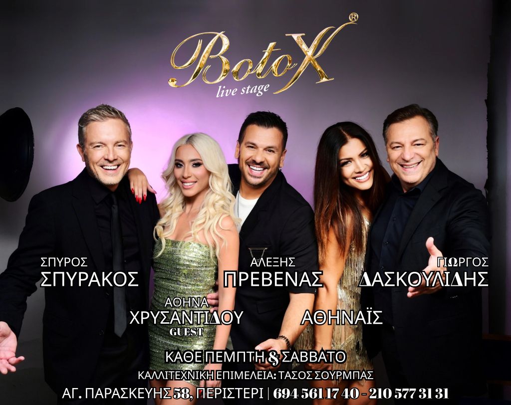 Στην οδό Αγίας Παρασκευής 58 στο Περιστέρι, το Botox Live Stage (η σελίδα ανοίγει μέσω facebook) παρουσιάζει το Σπύρο Σπυράκο και τον Γιώργο Δασκουλίδη, κάθε Πέμπτη και Σάββατο.