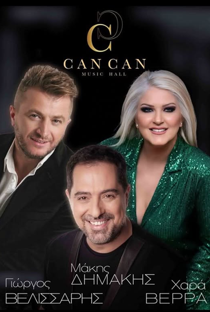 Στην οδό Πέτρου Ράλλη 62 και Κηφισού, βρίσκεται το Can Can (η σελίδα ανοίγει μέσω facebook). Εκεί κάθε Παρασκευή και Σάββατο θα εμφανίζονται οι: Γιώργος Βελισσάρης, Χαρά Βέρρα και Μάκης Δημάκης.