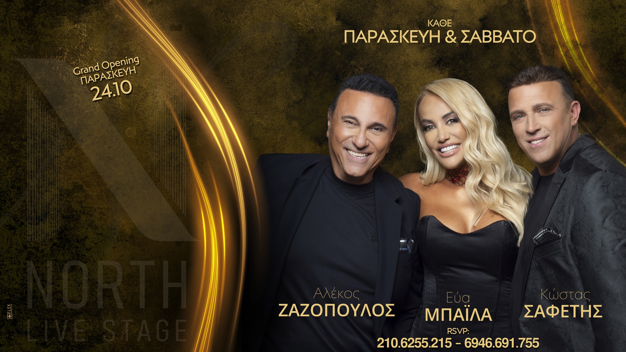 Στα Βόρεια Προάστια και πιο συγκεκριμένα στην Εμπάτη North Live Stage, στην οδό Ολύμπου 1 στην Νέα Κηφισιά (η σελίδα ανοίγει μέσω facebook), εμφανίζονται οι: Αλέκος Ζαζόπουλος, Εύα Μπάιλα και ο Κώστας Σαφέτης κάθε Παρασκευή και Σάββατο.